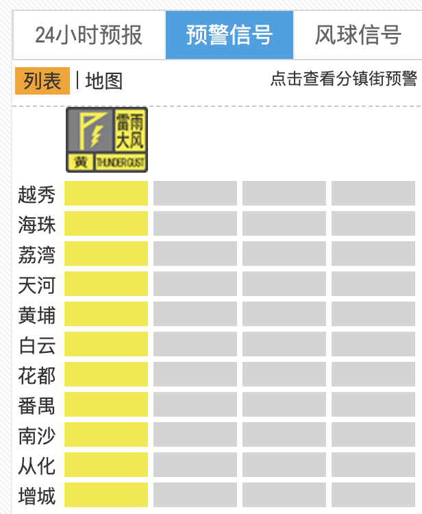 截至11:10,番禺区雷雨大风黄色预警生效中。在外请注意防御!